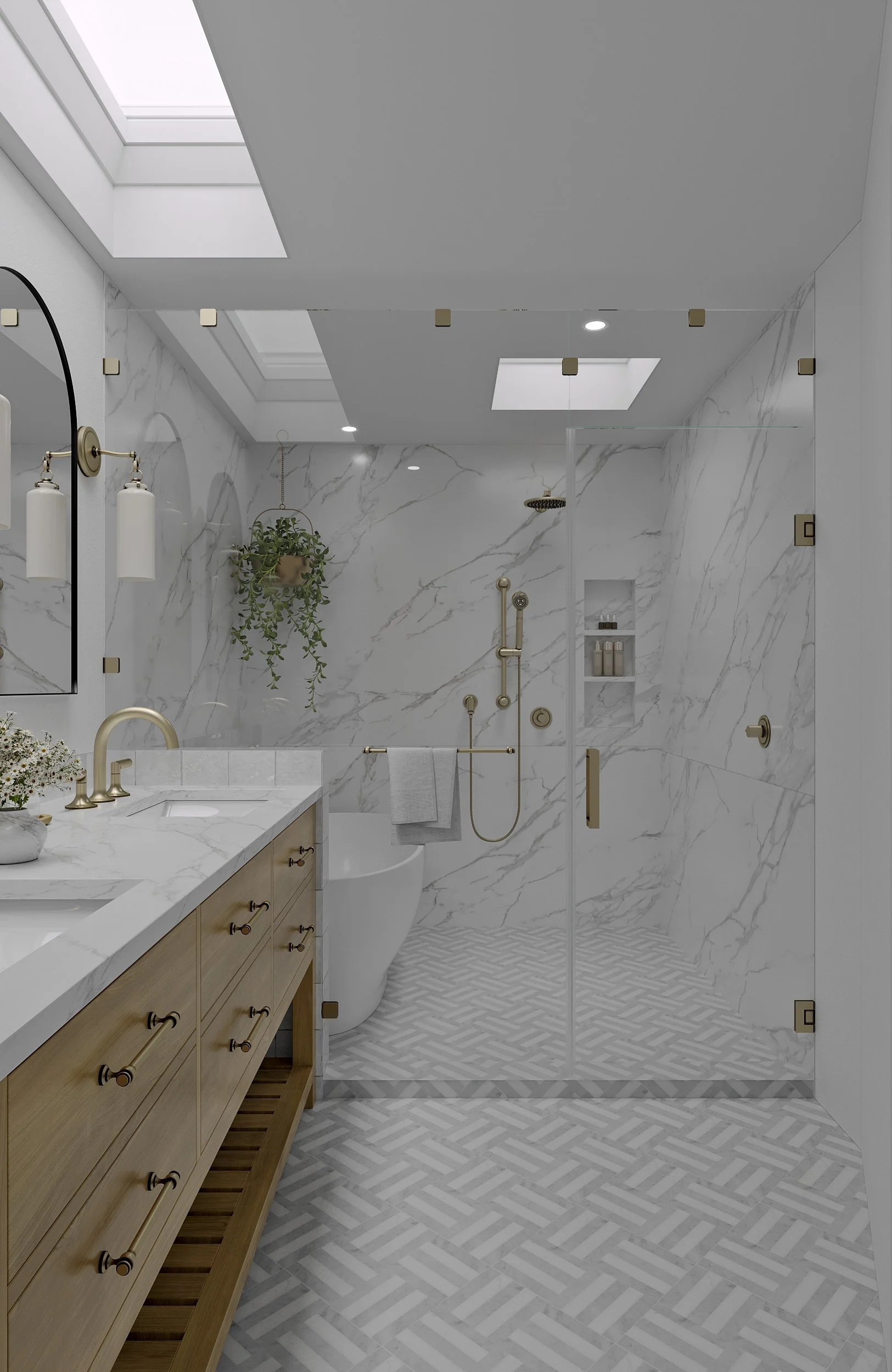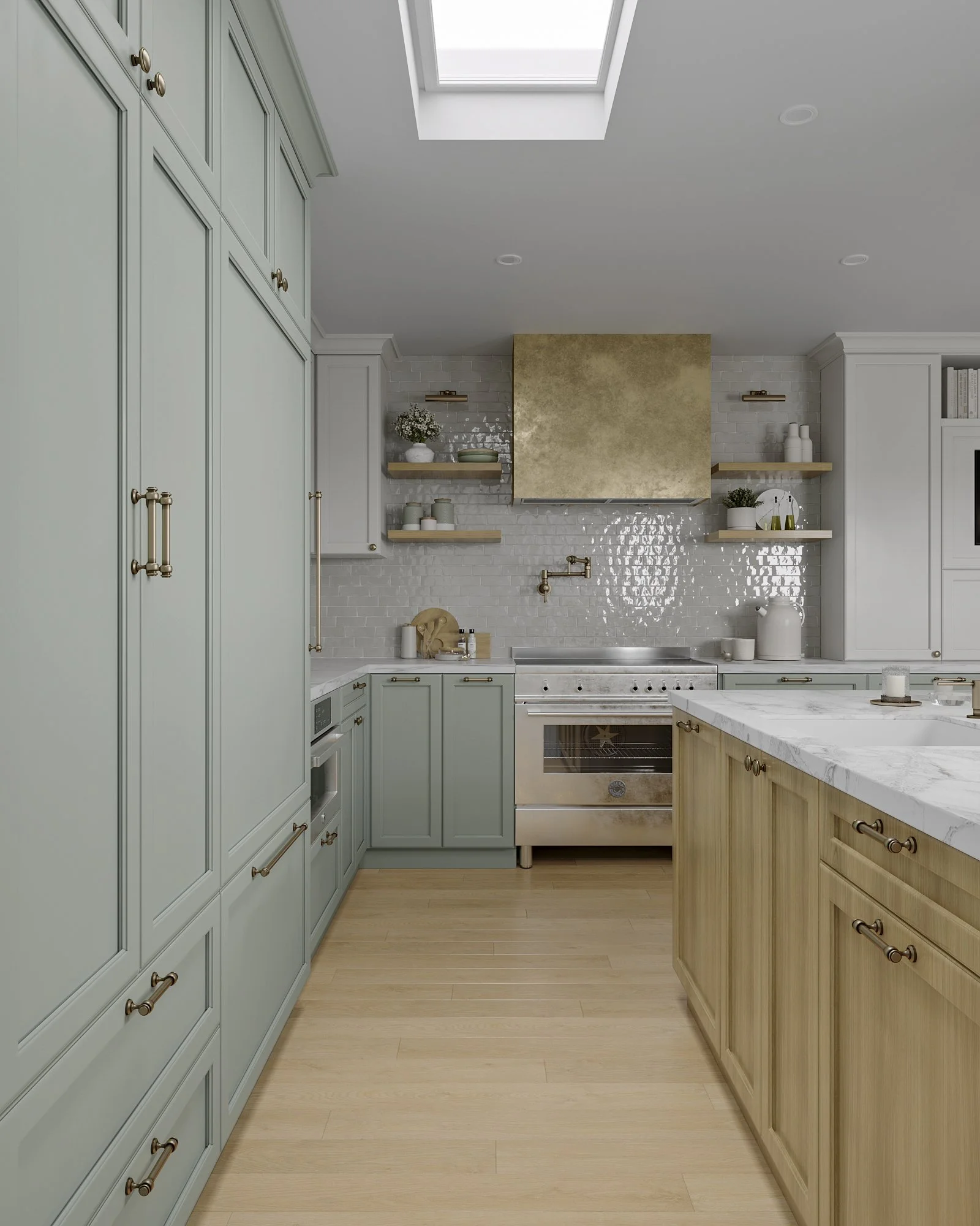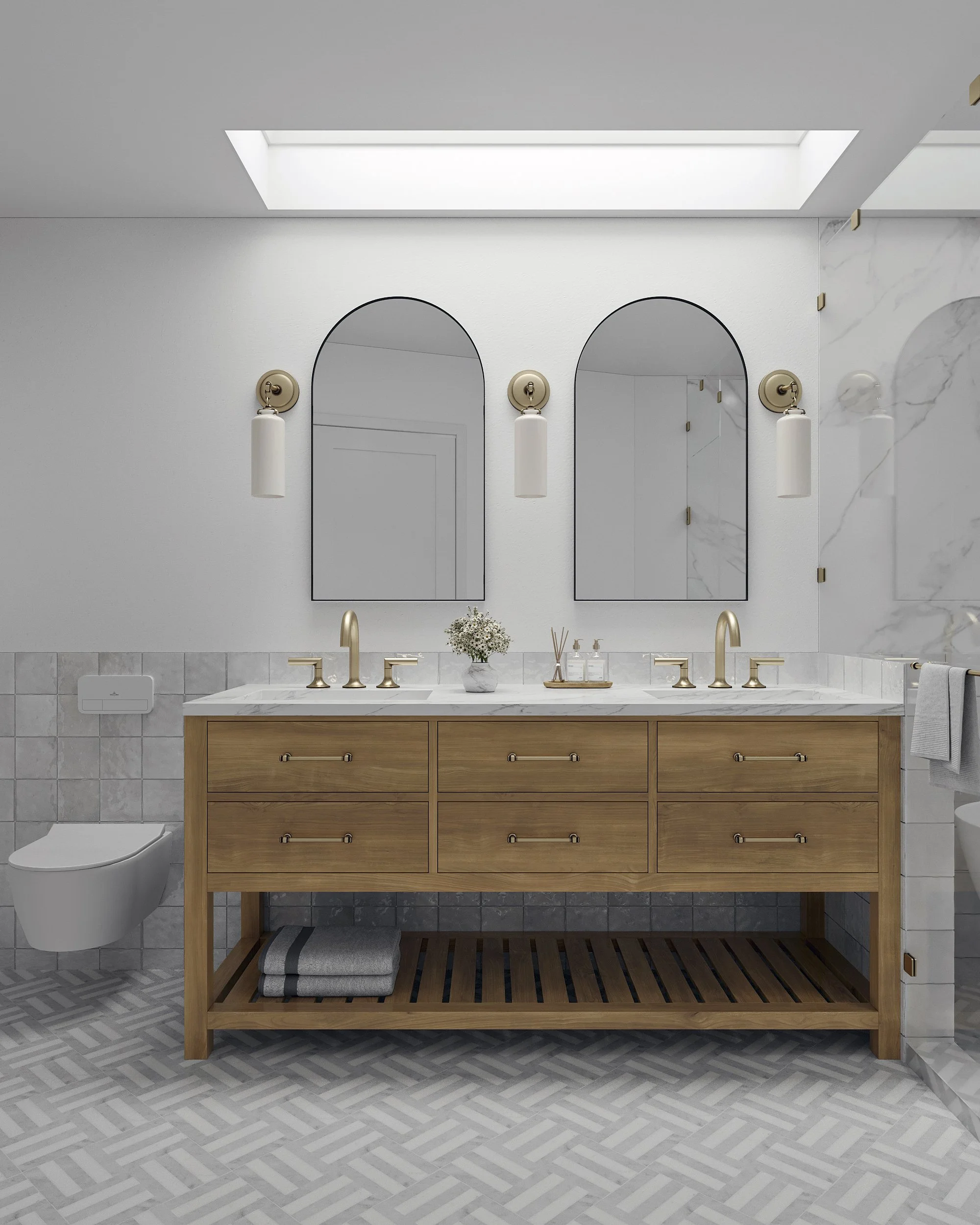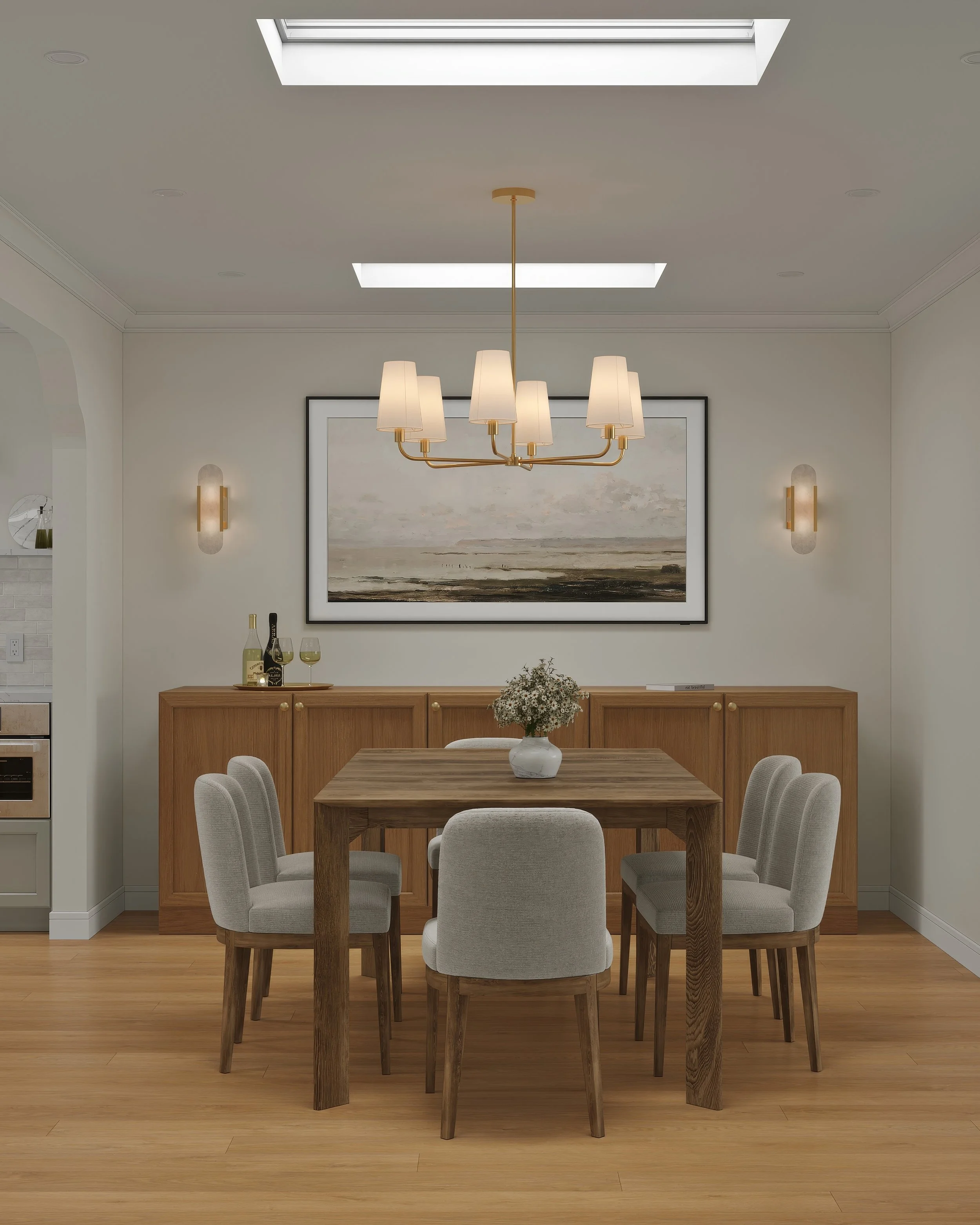 The primary design challenge was to expand usable living space without increasing the building footprint or compromising the home’s historic character. By reworking the existing floor plan and infilling an internal patio and lightwell, the design created a more generous kitchen, dining area, and bathroom. A former closet was repurposed as a discreet half-bath, providing a dedicated powder room for guests. Strategically placed skylights further transform the interior, introducing abundant daylight and creating bright, welcoming spaces that feel both contemporary and rooted in the home’s original fabric.